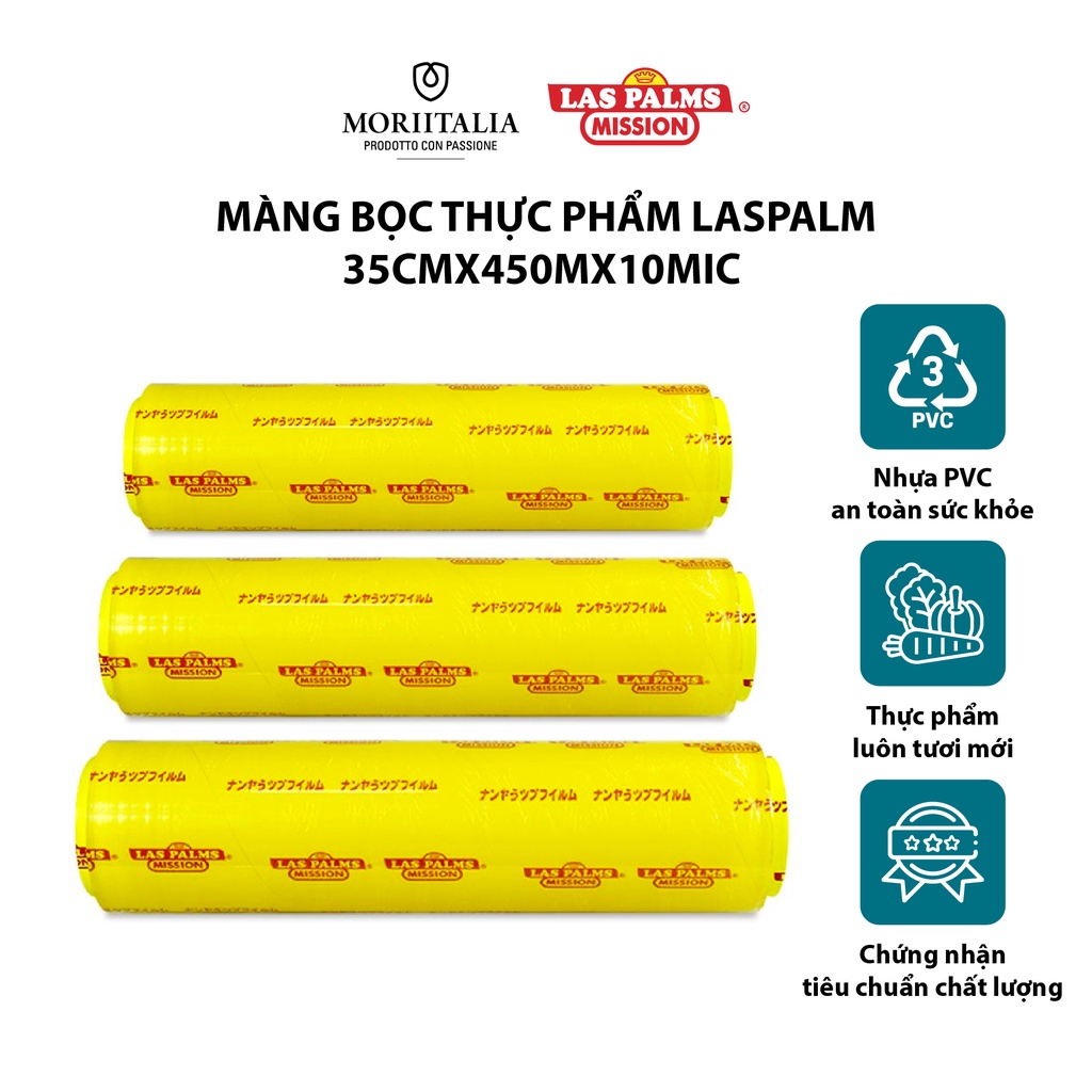 Màng bọc Thực Phẩm Laspalm chính hãng Moriitalia 35cmx450mx10mic MBTP00000048Las Palms là thương hiệu màng bọc nổi tiếng khắp mọi nơi trên thế giới, được dùng trong các nhà hàng khách sạn cao cấp. Sản phẩm được sản xuất theo tiêu chuẩn quốc tế mang lại an toàn sức khỏe cho người tiêu dùng. Màng bọc thực phẩm Las Palm dẻo và dai hơn so với các loại màng bọc khác cùng ngành.