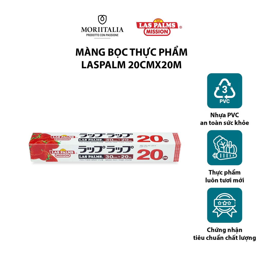 Màng bọc Thực Phẩm Laspalm chính hãng Moriitalia 20cmx20m - MBTP00009232Las Palms là thương hiệu màng bọc nổi tiếng khắp mọi nơi trên thế giới, được dùng trong các nhà hàng khách sạn cao cấp. Sản phẩm được sản xuất theo tiêu chuẩn quốc tế mang lại an toàn sức khỏe cho người tiêu dùng. Màng bọc thực phẩm Las Palm dẻo và dai hơn so với các loại màng bọc khác cùng ngành.