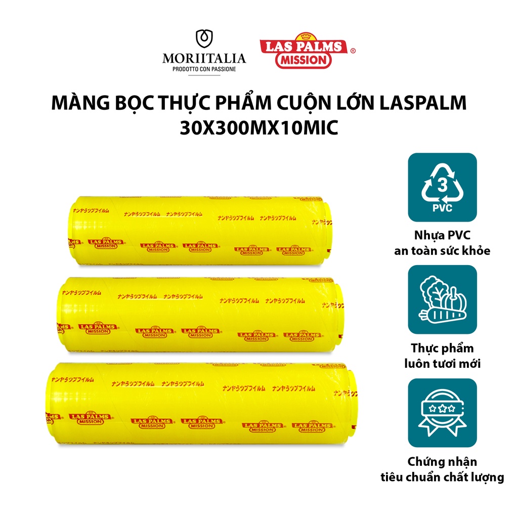 Màng Bọc Thực Phẩm Laspalm Chính Hãng Cuộn Lớn 30x300mx10mic - MBTP00000009-VNLas Palms là thương hiệu màng bọc nổi tiếng khắp mọi nơi trên thế giới, được dùng trong các nhà hàng khách sạn cao cấp. Sản phẩm được sản xuất theo tiêu chuẩn quốc tế mang lại an toàn sức khỏe cho người tiêu dùng. Màng bọc thực phẩm Las Palm dẻo và dai hơn so với các loại màng bọc khác cùng ngành.