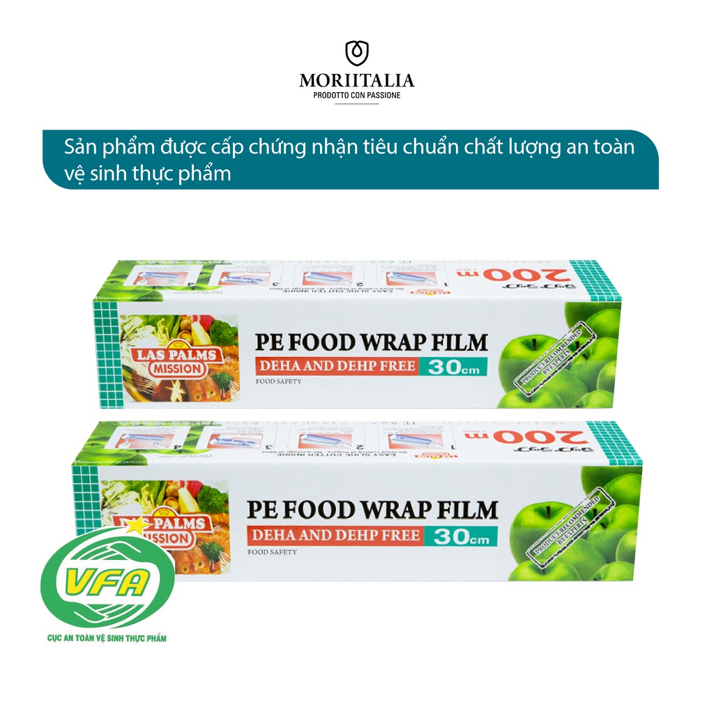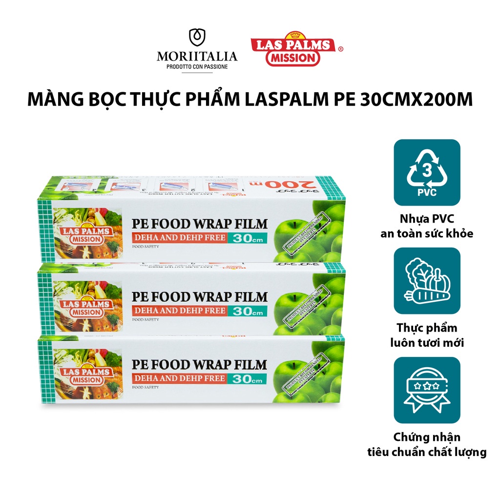 Màng bọc Thực Phẩm Laspalm PE chính hãng Moriitalia 30cmx200m - MBTP00006170Las Palms là thương hiệu màng bọc nổi tiếng khắp mọi nơi trên thế giới, được dùng trong các nhà hàng khách sạn cao cấp. Sản phẩm được sản xuất theo tiêu chuẩn quốc tế mang lại an toàn sức khỏe cho người tiêu dùng. Màng bọc thực phẩm Las Palm dẻo và dai hơn so với các loại màng bọc khác cùng ngành.