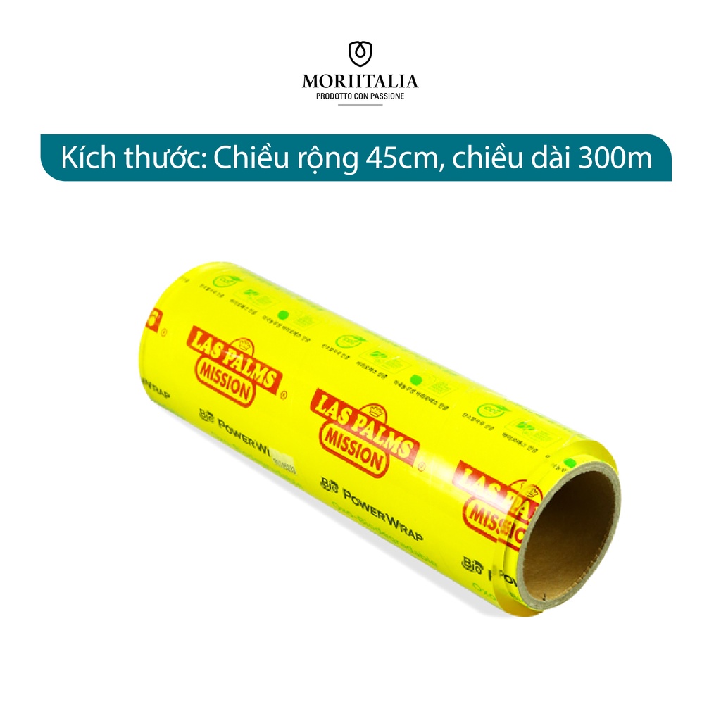 Màng Bọc Thực Phẩm Laspalm Tự Hủy Sinh Học Moriitalia 45cmx300mx10mic - MBTP00000112Las Palms là thương hiệu màng bọc nổi tiếng khắp mọi nơi trên thế giới, được dùng trong các nhà hàng khách sạn cao cấp. Sản phẩm được sản xuất theo tiêu chuẩn quốc tế mang lại an toàn sức khỏe cho người tiêu dùng. Màng bọc thực phẩm Las Palm dẻo và dai hơn so với các loại màng bọc khác cùng ngành.