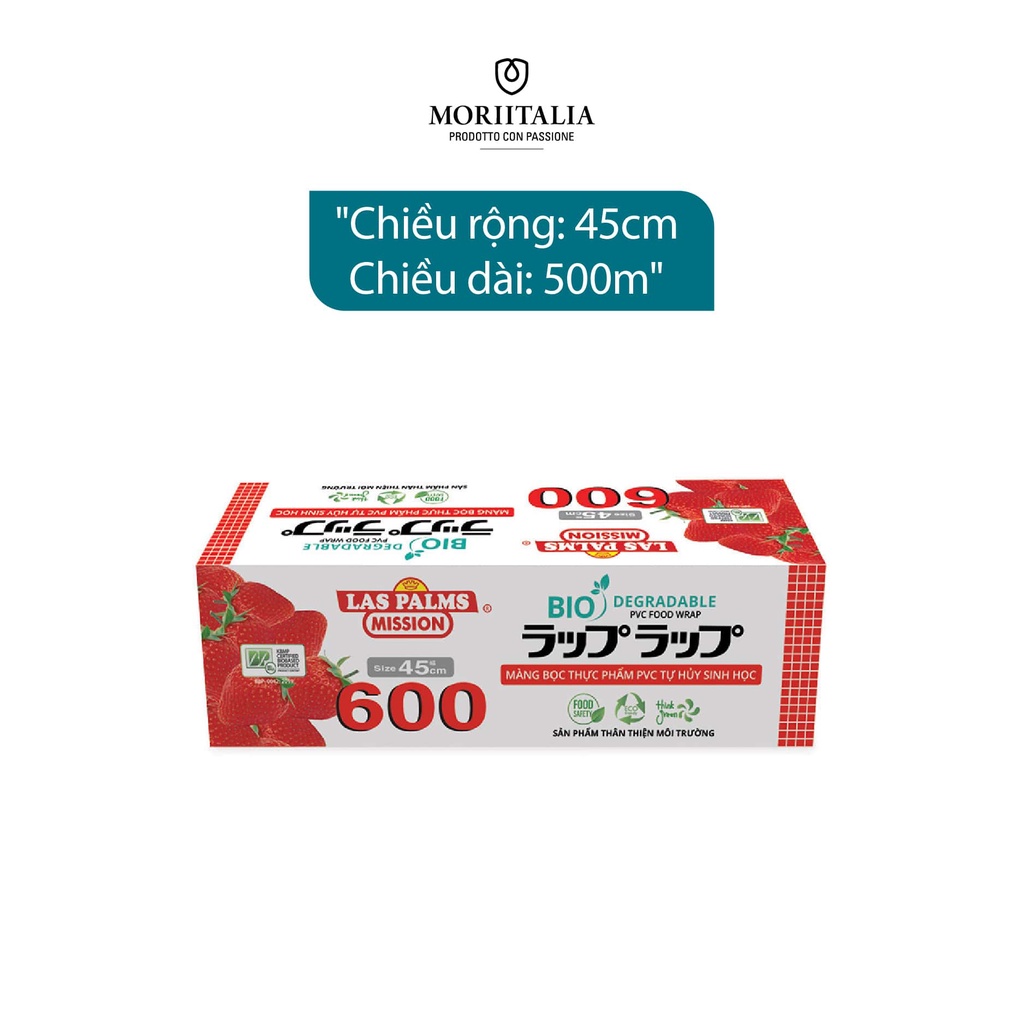 Màng bọc thực phẩm Laspalm tự hủy sinh học Moriitalia - MBTP00006378Las Palms là thương hiệu màng bọc nổi tiếng khắp mọi nơi trên thế giới, được dùng trong các nhà hàng khách sạn cao cấp. Sản phẩm được sản xuất theo tiêu chuẩn quốc tế mang lại an toàn sức khỏe cho người tiêu dùng. Màng bọc thực phẩm Las Palm dẻo và dai hơn so với các loại màng bọc khác cùng ngành.