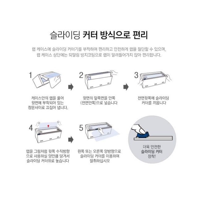 - Thiết kế dao cắt ngay trên hộp tiện lợi, dễ dàng bọc thực phẩm