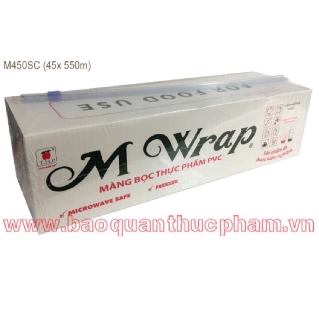 Màng bọc thực phẩm: M Wrap, Mã: M300SC, khổ 30cm dài 550m. Sản phẩm được sản xuất từ chất liệu PVC tổng hợp cao cấp, được kiểm chứng là không gây hại cho sức khỏe con người, đã được Cục An Toàn Vệ Sinh Thực Phẩm - Bộ Y Tế cấp giấy chứng nhận. Trong suốt, dẻo dai, co dãn tốt, dùng để bảo quản thực phẩm, thức ăn, rau quả , tránh nhiễm khuẩn, an toàn thực phẩm. Có thể sử dụng lò vi ba (mức độ hâm nóng ngắn hạn), Có thể sử dụng trong ngăn mát tủ lạnhGiá WSOMI