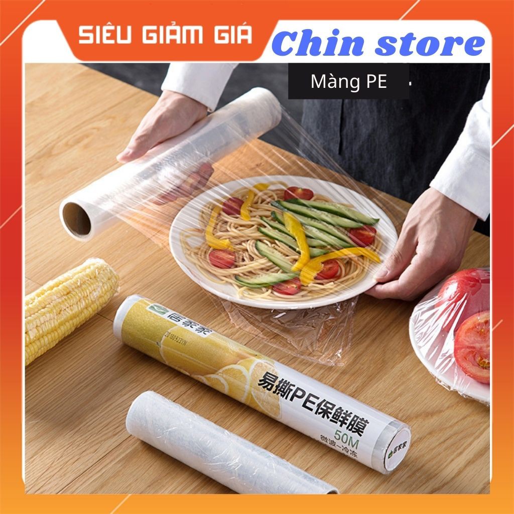 Màng bọc thực phẩm PE chịu nhiệt, bảo quản thực phẩm tốt an toàn cho sức khỏe loại 20m, loại 50m.-Màng bọc thực phẩm với đa năng, có thể bọc mọi loại đồ ăn, thức uống để đảm bảo vệ sinh , tránh mùi từ đồ ăn này sang đồ ăn khác trong tủ lạnh.