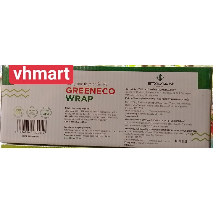 - Tên sản phẩm: Màng Bọc Thực Phẩm PE Green Eco 30Cm*250M- Xuất xứ: Việt Nam
