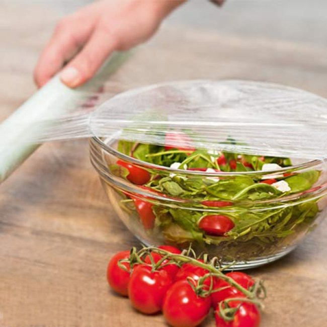 • Bao bì bảo quản thực phẩm có thể được sử dụng linh hoạt với mọi hình dáng, kích thước của vật cần bảo quản. Nó tạo ra một màng mỏng cách ly sự tiếp xúc giữa thực phẩm với bụi, nước - tác nhân gây giảm thời hạn sử dụng của thực phẩm. Ngoài ra, màng nhựa trong suốt có thể giúp người dùng có thể quan sát thực phẩm một cách trực quan trong suốt quá trình bảo quản.