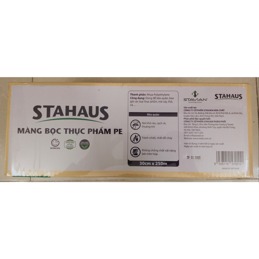 Màng bọc thực phẩm PE STAHAUS chất liệu co giãn an toàn với thức ăn lò vi sóng Khổ 30cmx250m
