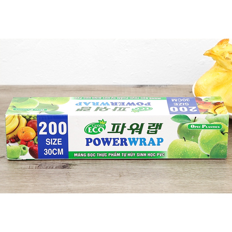 Màng Bọc Thực Phẩm Power Wrap PVC Tự Hủy Sinh Học 9 Mic x 300 mm x 100 M - Màng bọc thực phẩm Power Wrap PVC tự hủy sinh học ngăn mùi hiệu quả, giúp việc bảo quản đồ ăn trong tủ lạnh trở nên thuận tiện, đảm bảo vệ sinh hơnSản phẩm giúp giữ lại trọn vẹn sự tươi ngon của mỗi món ăn sau khi bảo quản