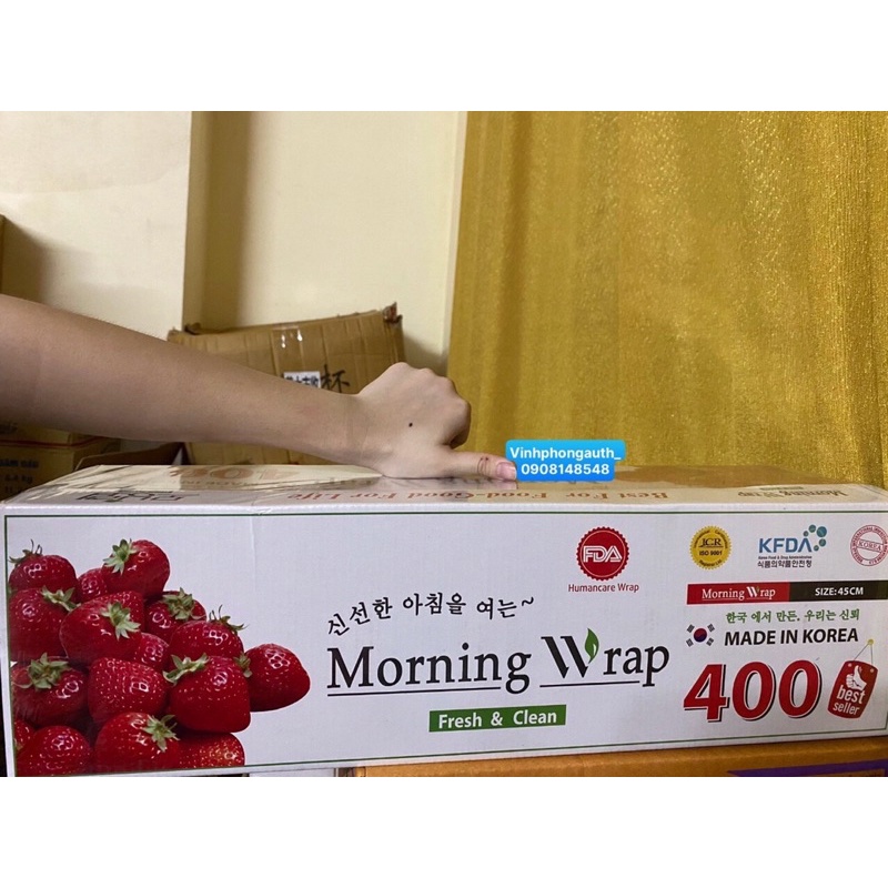 👉Morning Wrap là thương hiệu màng bọc thực phẩm do Công ty Cổ phần Eufood Saigon nhập khẩu trực tiếp từ Hàn Quốc và phân phối tại thị trường Việt Nam. Morning Wrap có nhiều kích cỡ, được sản xuất tại J&J Co Ltd, Hàn Quốc và đã được Bộ Y Tế Việt Nam cấp giấy chứng nhận an toàn cho sức khỏe người tiêu dùng.