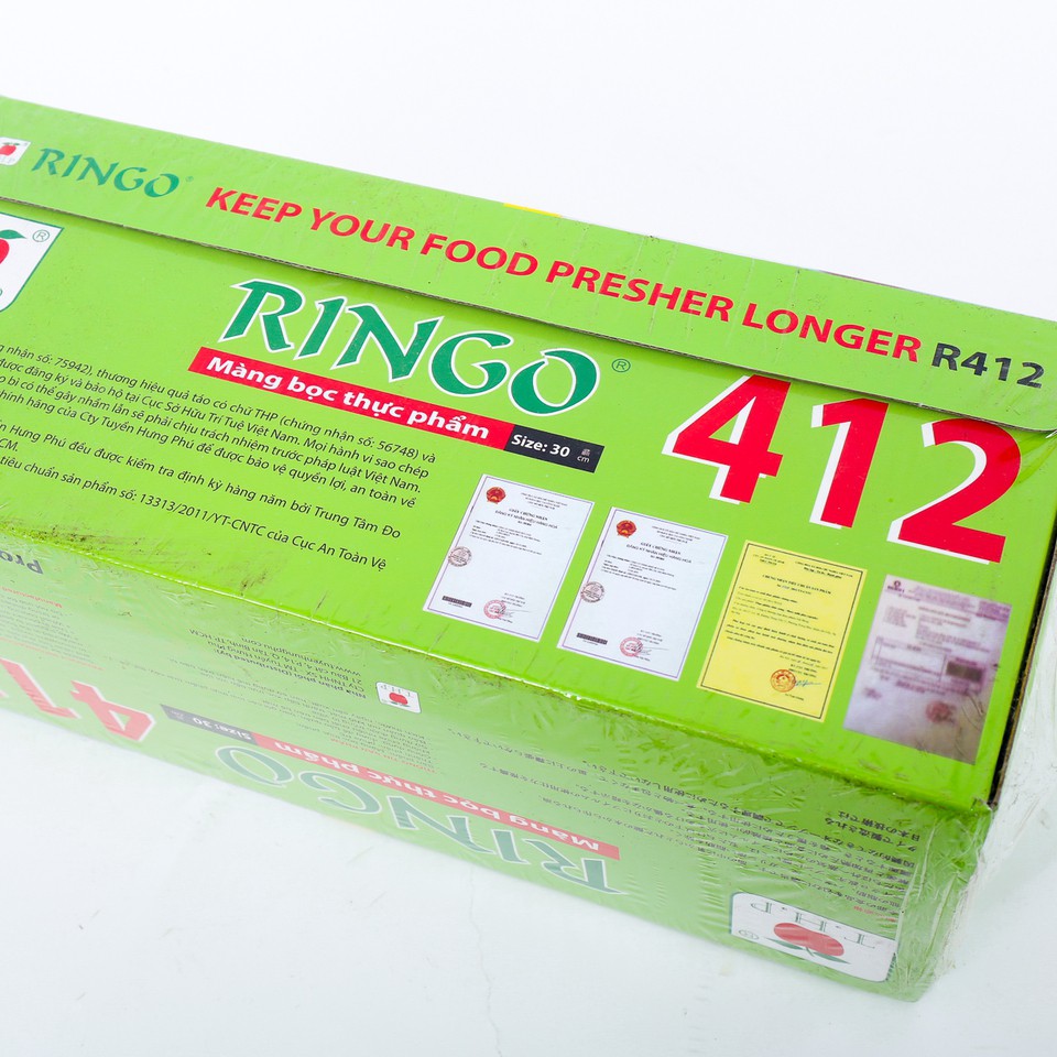Màng bọc thực phẩm Ringo R412 có bề rộng 30cm sử dụng để bọc ngoài nhiều loại bát đĩa, thực phẩm. Độ dài 250m sử dụng được lâu dài.