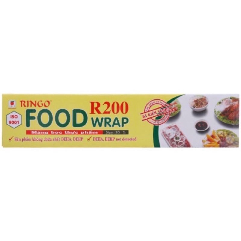 Màng bọc thực phẩm 30cm x 150m Ringo THP R200 dùng để bảo quản, bao gói các thực phẩm nhằm ngăn ngừa thực phẩm tiếp xúc với không khí, vi khuẩn, giữ cho thực phẩm tươi ngon lâu hơn. Độ bám dính của drap tốt giúp dễ dàng bám lên các tô, dĩa, chén có chất liệu làm từ thủy tinh, sành, sứ, nhựa.