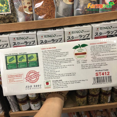 Giới thiệu Màng bọc thực phẩm Ringo 412 30cm x 300m, chính hãng công ty, co giãn trong suốt, bám dính dùng được lò vi sóng
