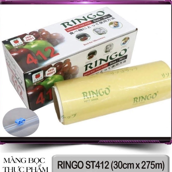 Hàng chính hãng Màng Bọc Thực Phẩm RinGo 412 dùng để bọc bảo quản thực phẩm, có thể sử dụng được trong lò vi sóng và tủ lạnhThông tin sản phẩm: