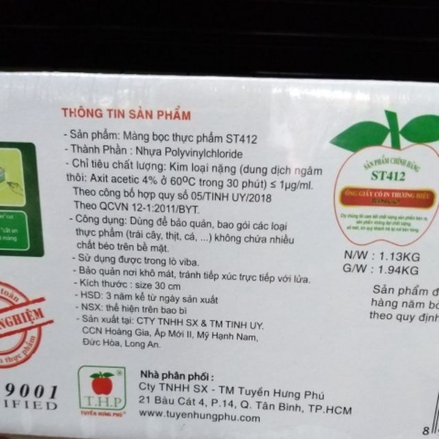 Mỗi cuộn màng đều có thông tin sản phẩm được in rõ trên vỏ hộp giấy