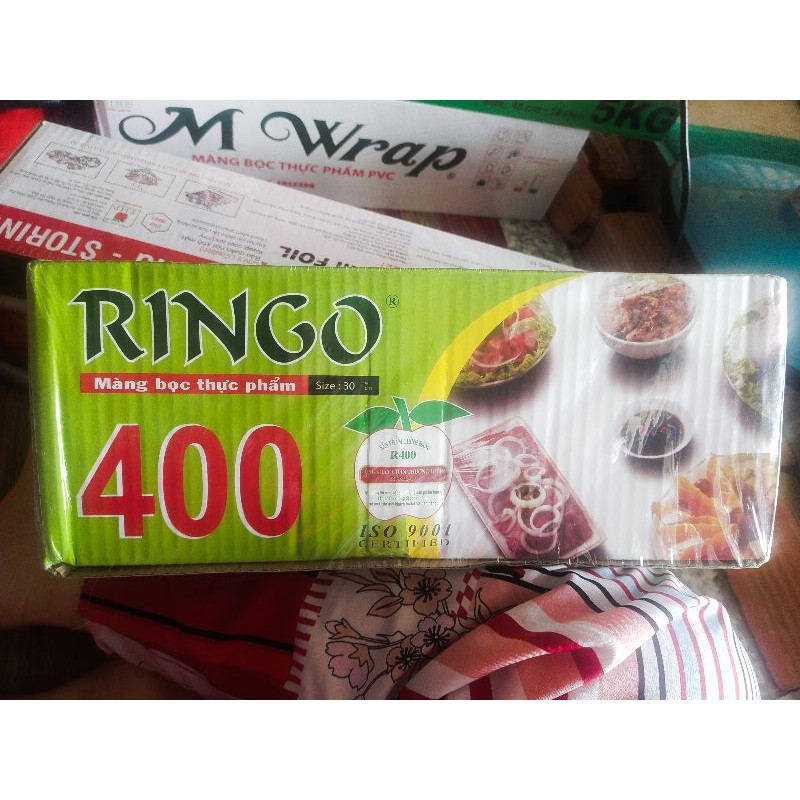 Đặc điểm sản phẩm - Màng bọc thực phẩm Ringo R400 là một trong những dòng sản phẩm thuộc nhãn hiệu Ringo. Khổ 30cm dài ~200m Kèm dao cắt - Đây là một loại bao bì bảo quản thực phẩm có thể được sử dụng linh hoạt với mọi hình dáng, kích thước của vật cần bảo quản. Nó tạo ra một màng mỏng cách ly sự tiếp xúc giữa thực phẩm với bụi, nước - tác nhân gây giảm thời hạn sử dụng của thực phẩm. Ngoài ra, màng nhựa trong suốt có thể giúp người dùng có thể quan sát thực phẩm một cách trực quan trong suốt quá trình bảo quản. - Điểm đặc trưng là kích thước khổ rộng 30 cm, phù hợp với đại đa số các trường hợp thực phẩm trong bếp gia đình cần được bảo quản bằng màng bọc. Chiều dài 220 m giúp tiết kiệm hơn nếu có nhu cầu sử dụng cao - Được Cục An toàn vệ sinh thực phẩm cấp giấy chứng nhận - Không chứa DEHA - Không chứa DEHP - Có thể sử dụng lò vi sóng, tủ lạnh.2. Thông số sản phẩm Kích thước 30cm x 220m (rộng x dài) Thành phần Nhựa Polyvinylchloride (PVC) DEHA Không có DEHP Không có Tiêu chuẩn Được Cục An toàn vệ sinh thực phẩm cấp giấy chứng nhận Dao gạt có Lò vi ba Có thể sử dụng lò vi ba (mức độ hâm nóng ngắn hạn) Tủ lạnh Có thể sử dụng trong ngăn mát HSD 3 năm Xuất xứ Việt Nam Đóng gói tại Công ty TNHH SX & TM Tinh Uy Mỗi cuộn màng bọc được đặt trong một vỏ hộp giấy, có logo trái Táo Màng bọc được kiểm nghiệm theo tiêu chuẩn ISO 9001