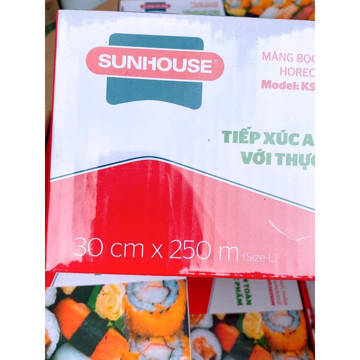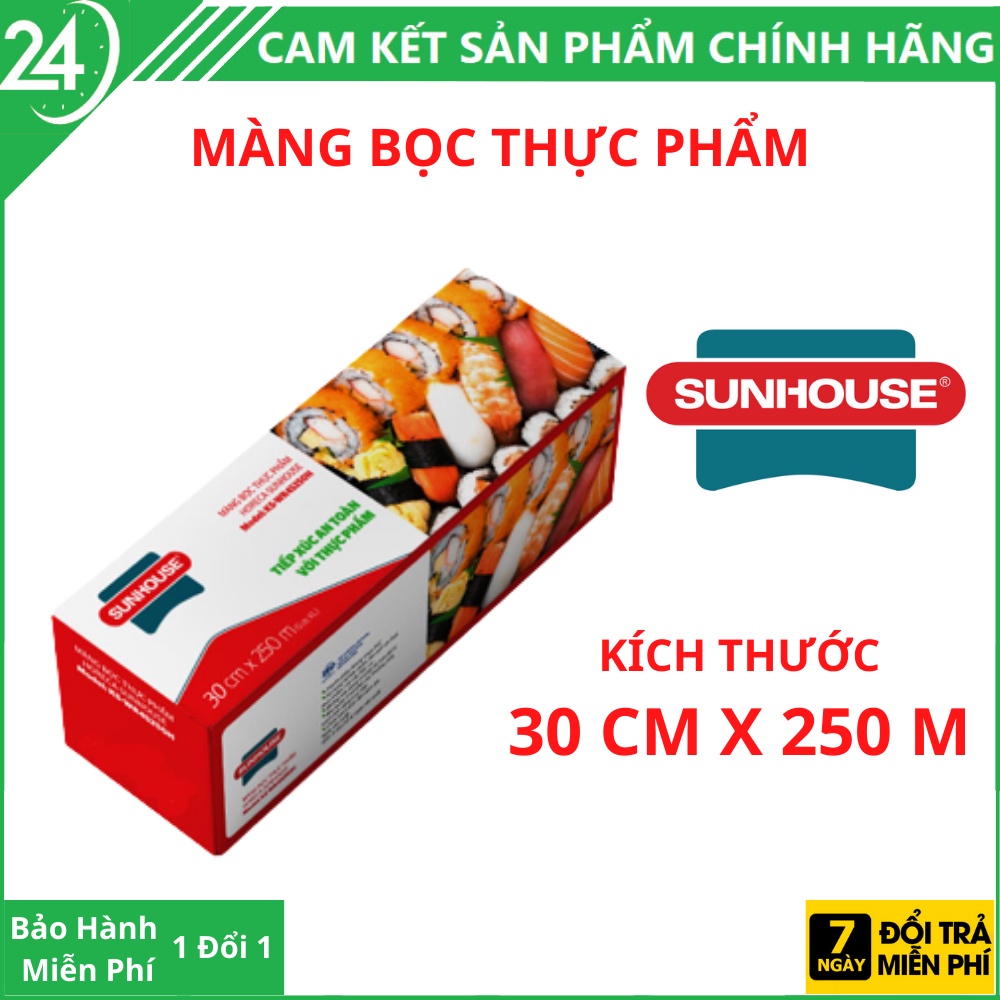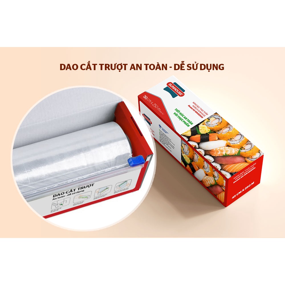 Màng bọc thực phẩm SUNHOUSE Kích thước 30cmx250m bảo quản tốt tất cả các loại thực phẩm an toàn không gây độc hạiThống số kỹ thuật: