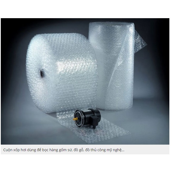 Những lớp xốp hơi bóng khí với những chiếc bong bóng được bơm hơi sẽ giúp cho hàng hoá khi di chuyển được bảo vệ tốt hơn khi vận chuyển với vận tốc cao và những con đường gồ ghề.
