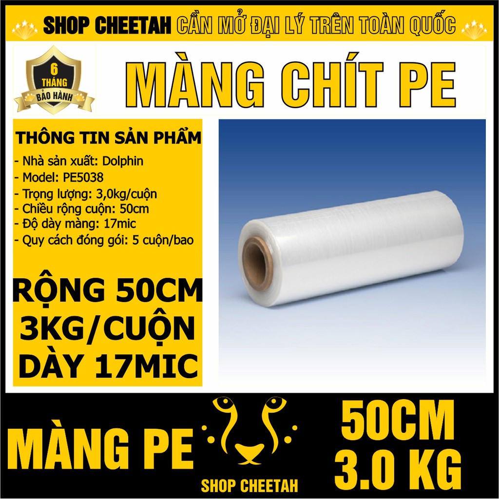 Màng chít PE 3kg*50cm – Màng cuốn pallet – Màng co bọc hàng hóa – Dính và dai chắc – Rộng 50cm x 3kg/cuộnTHÔNG TIN SẢN PHẨM: