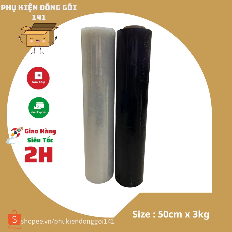 Màng co PE Đen/Trong khổ 50cm x3kg màng pe quấn hàng hóa, quấn pallet