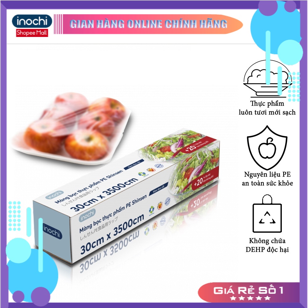 === ƯU ĐIỂM CỦA SẢN PHẨM Màng bọc thực phẩm ===Màng bọc thực phẩm PE Shinsen INOCHI giúp bảo quản thực phẩm an toàn tiện lợi và bảo vệ sức khỏe MANGBOC