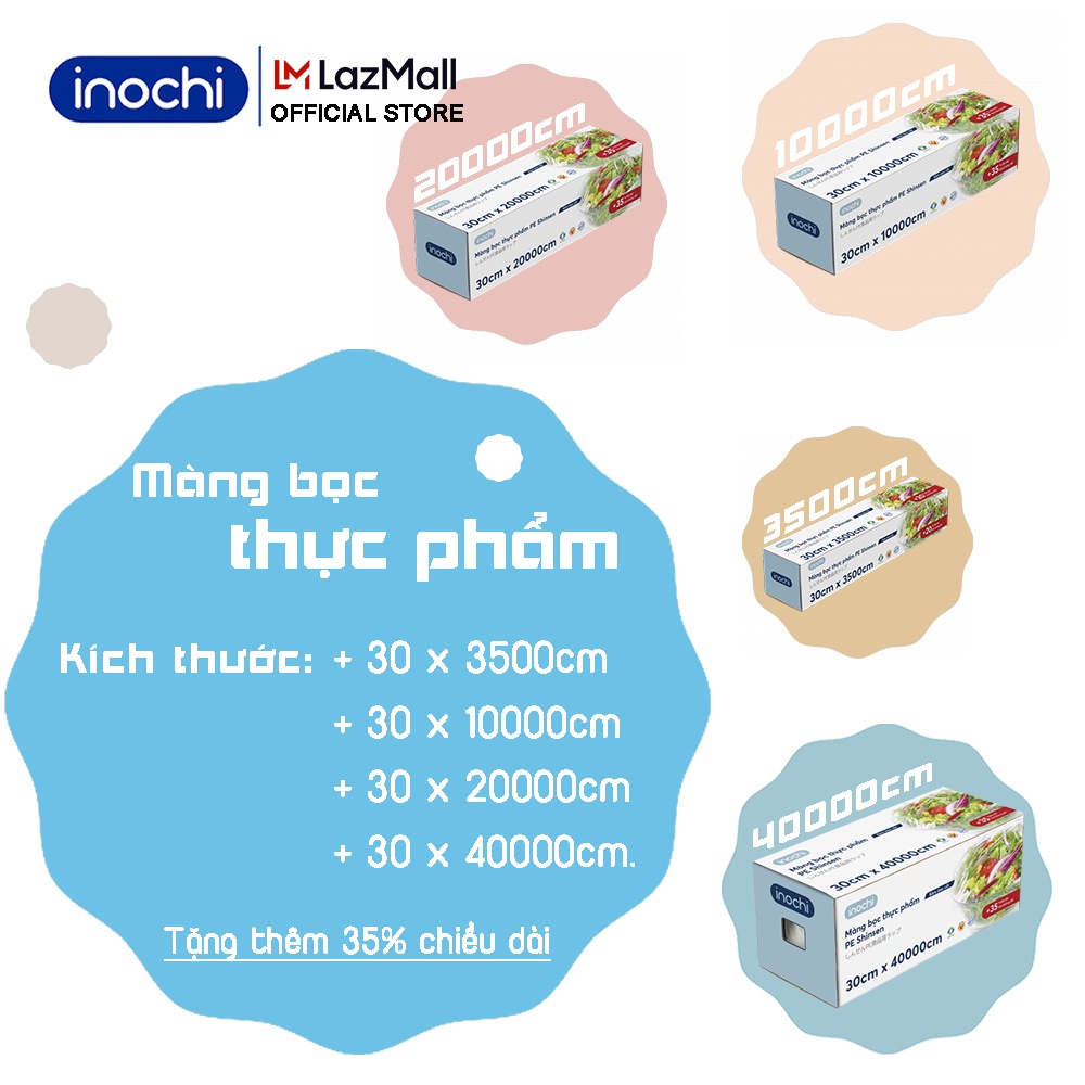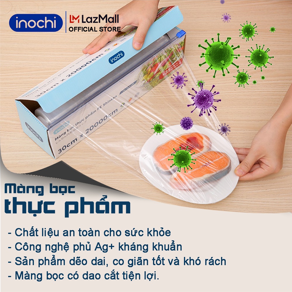 Màng co thực phẩm bọc thức ăn cao cấp 30*3500 cm PE Inochi bảo quản thực phẩm tươi sạch loại