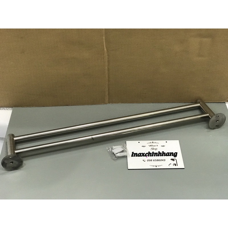 Máng khăn 2 thanh inox304, Bát tròn, thanh treo khăn tròn . Bảo hành 05 năm, dài 60 cm