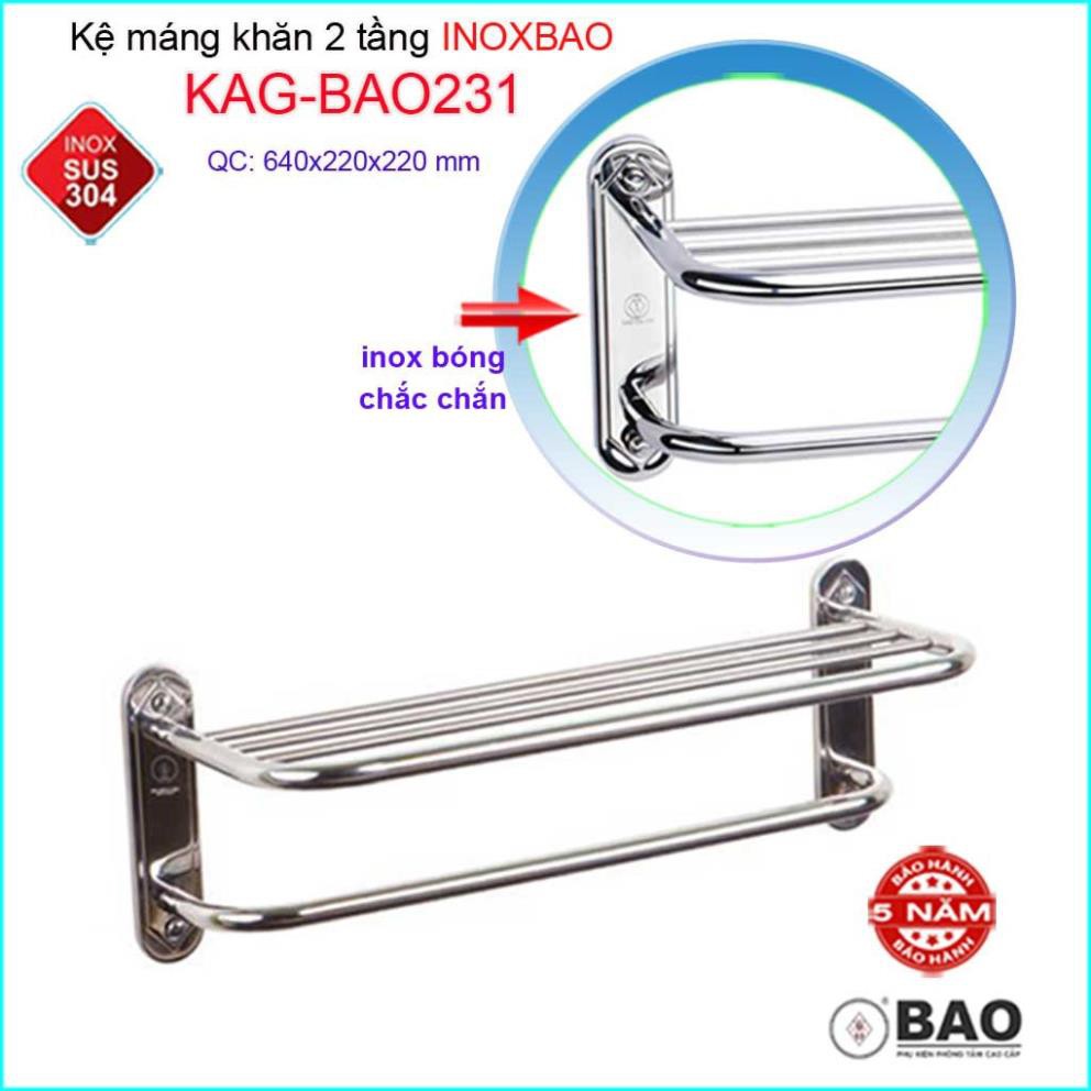 Ưu điểm: Thanh máng khăn Inox Bảo, thanh treo khăn inox 304, vắt khăn SUS304 KAG-BAO231 thiết kế đẹp,có 2 tầng dùng để treo+ vắt khăn, phơi khăn cho nhà tắm gia đình và khách sạn cao cấp