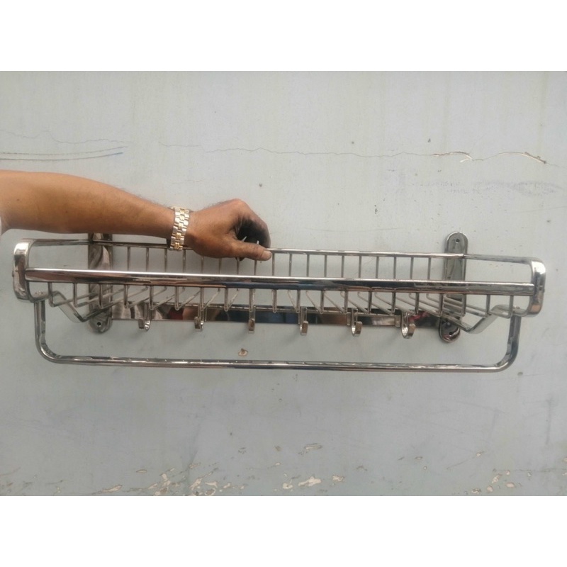 Giới thiệu Máng khăn tầng đa năng inox304 ,kệ rổ đa năng,móc áo ,rổ xà bông phòng tắm