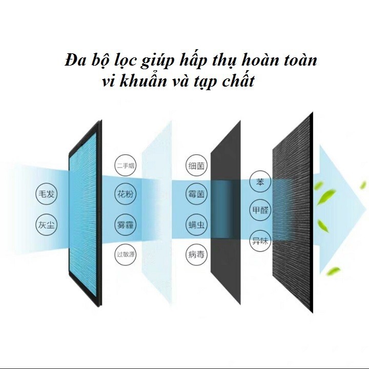 + Bộ lọc thô lọc bụi kích thước lớn, bui PM2.5 đường kính lớn hơn 1micro