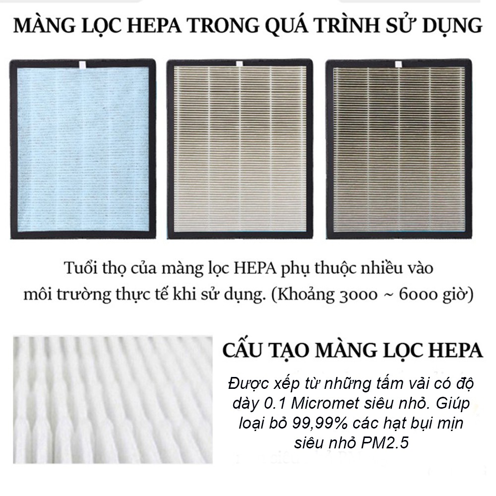 - Lọc 99.98% bụi bẩn và ô nhiễm