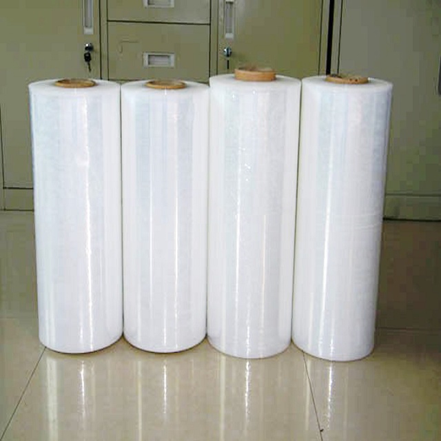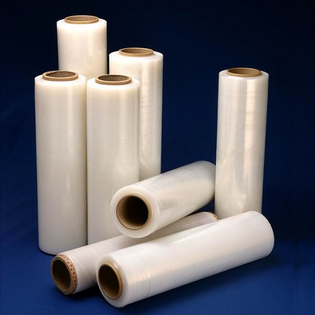 Màng Pe quấn pallet một bề mặt trong suốt, mịn màng, kết dính với bề mặt sản phẩm được đóng gói khác.