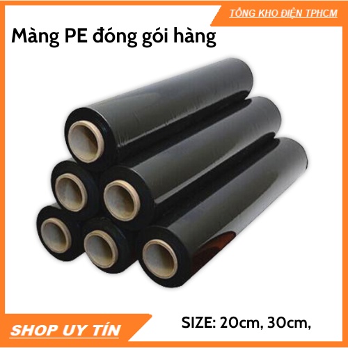 Màng quấn màng pe màng co màu đen 1.5Kg, 2.0Kg màu đen, khổ 20cm,30cm quấn bảo vệ khỏi bụi nước.+ Size 20cm - 1500G : cuộn PE khổ rộng 20 cm, nặng 1500G.