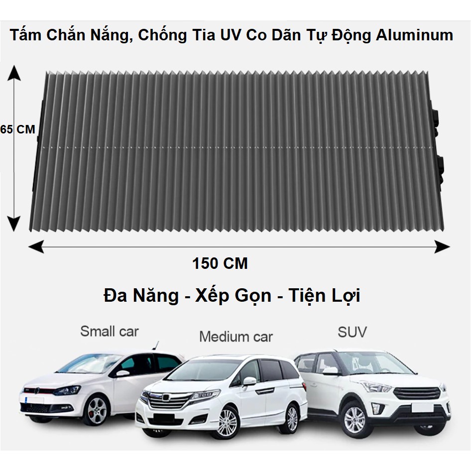 Giới thiệu Mành Che Nắng - Không Hấp Nhiệt - Chống Tia UV - Co Dãn Tự Động - Dùng Cho Các Dòng Xe Hơi - Kích Thước 150x65cm