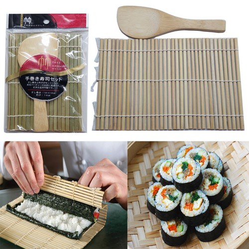 Mành cuộn Sushi bằng tre kèm muôi xới (cỡ vừa) Nội địa Nhật Bản