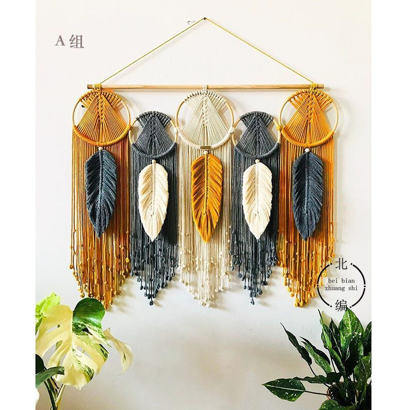 Giới thiệu Mành rèm macrame dreamcatcher treo tường trang trí nhà cửa, homestay, quán cafe kèm thanh gỗ treo