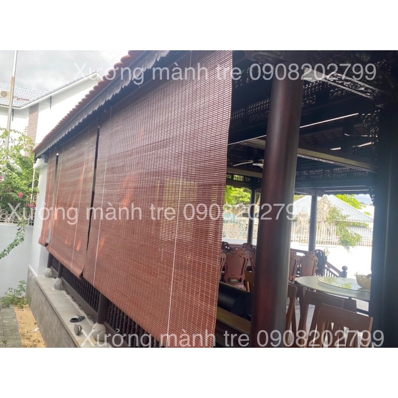 Mành sáo tre trúc ngoài trời cao cấp, Mành trúc cạo vỏ xử lý mối mọt, được sơn 2 mặt.Mành trúc nâu gụ che mái hiên nhà cổ, nhà gỗ, nhà thờ, cafe, rèm che bàn thờ.Mành tre Thịnh Phát xưởng chuyên sản và xuất cung cấp Sỉ và Lẻ mành tre trúc với nhiều tính năng: mành tre có thể dùng để che nắng mưa ngoài trời, ban công, vách ngăn tre trang trí, làm decor quán., mành tre bàn thờ..