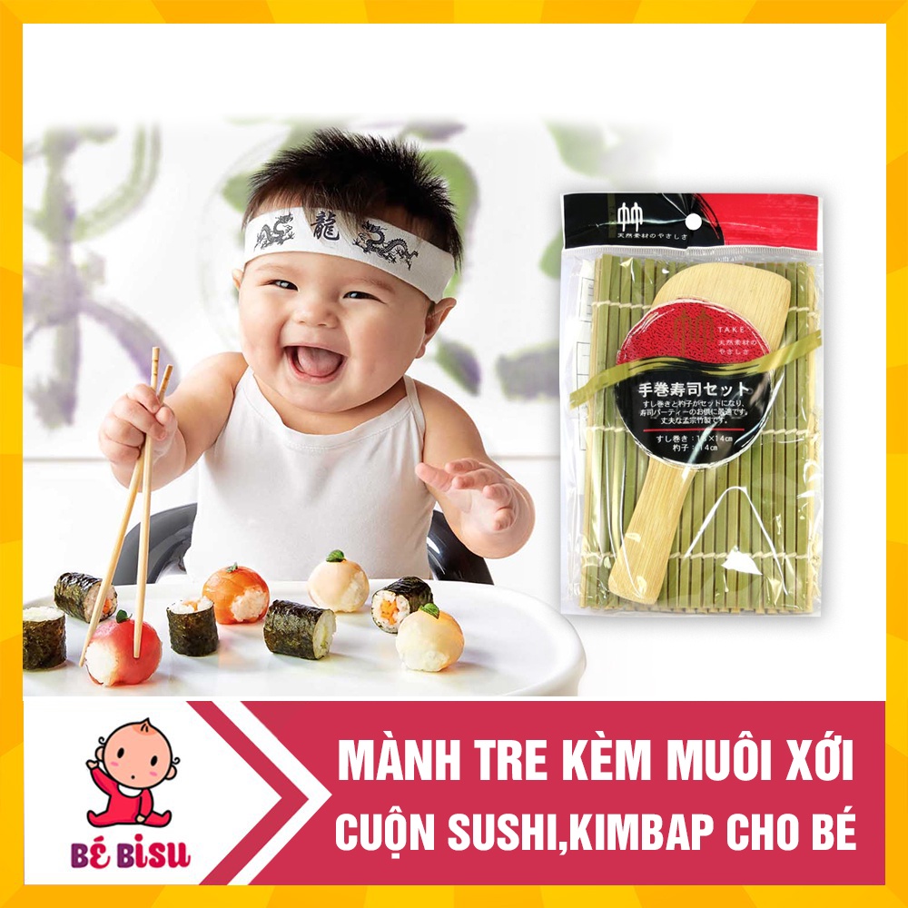 Mành tre cuộn sushi, cuộn kimbap cho bé, cỡ vừa kèm muôi xớiĐể làm những miếng kimbap, sushi thơm ngon, dễ dàng tiện lợi hơn thì Mành cuộn sushi bằng tre kèm muôi xới (cỡ vừa) là sản phẩm không thể thiếu cho các mẹ. Sản phẩm tiện lợi sử dụng làm cơm cuộn cho bé ăn dặm, con sẽ thích thú hơn và ăn ngon miệng hơn bởi những lát cơm cuộn nhiều màu sắc ngộ nghĩnh.