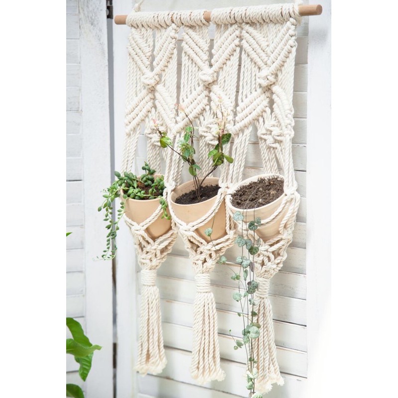 Nhà cửa & Đời sống > Làm vườn > Chậu cây || Mành treo cây 3 chậu decor homestay, hiên nhà phong cách VintageCòn hàng