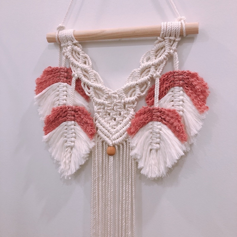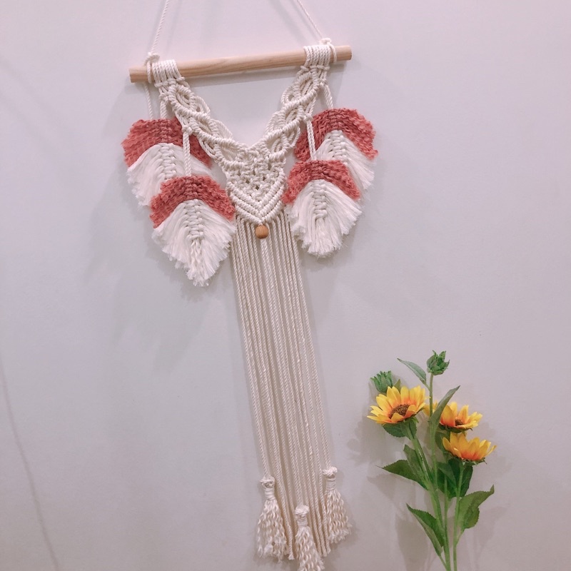 -Sản phẩm bao gồm : thanh gỗ tròn dài 30cm, dây đã tết macrame như hình