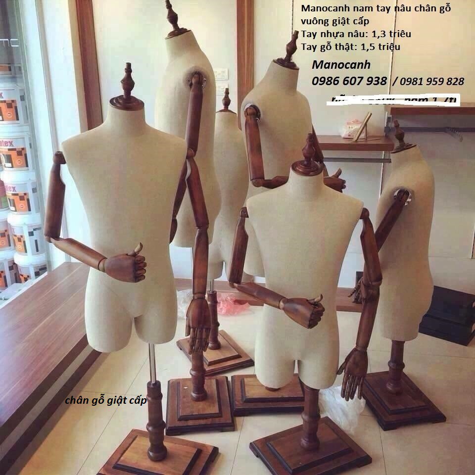 Manocanh nam tay nhựa nâu, chóp có loại chóp gỗ và loại đầu vải. Các bạn bấm vào nút cho vào giỏ để biết giá từng loại nhéThân có loại có đùi và không có đùi