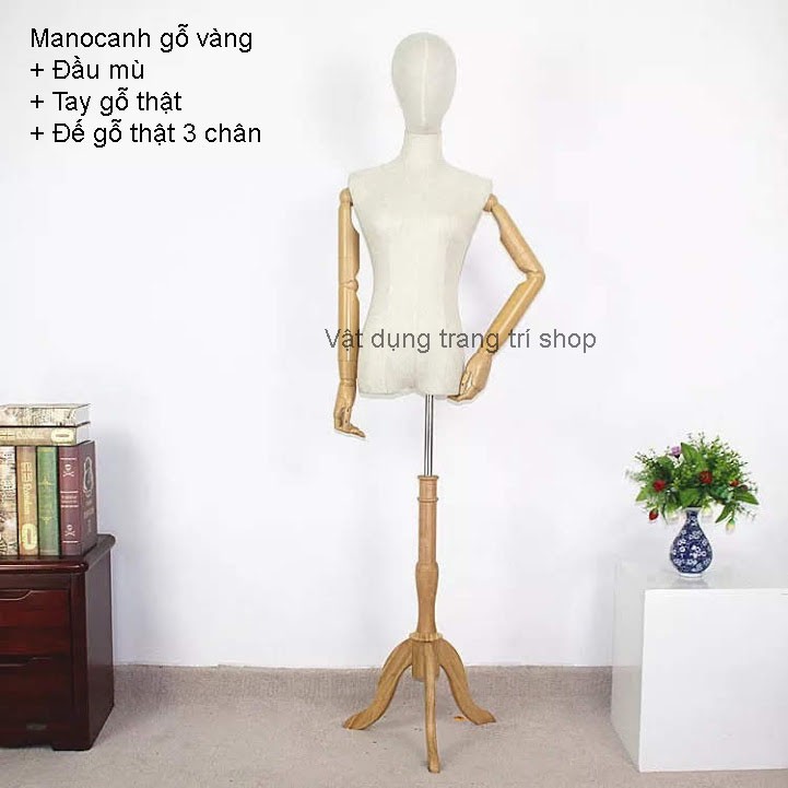Giới thiệu Manocanh tay gỗ có đầu + đế gỗ 3 chân