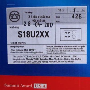 Giới thiệu Mặt 2 ổ cắm 2 chấu 16A với 2 lỗ Sino - Vanlock S18U2XX (Seri S18)