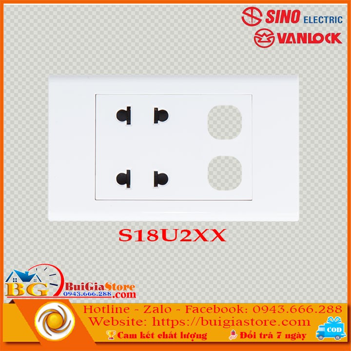 Thiết Bị Điện Gia Dụng > Mạch điện & Phụ tùng > Ổ cắm điện & Dây nối || Mặt 2 ổ cắm 2 chấu 16A với 2 lỗ Sino - Vanlock S18U2XX (Seri S18)Còn hàng