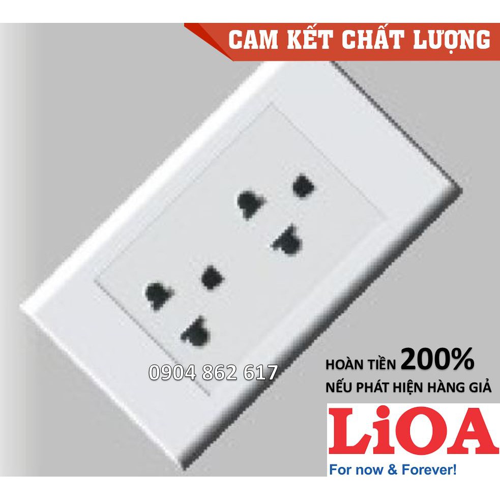 Thiết Bị Điện Gia Dụng > Mạch điện & Phụ tùng > Ổ cắm điện & Dây nối || Mặt 2 ổ cắm 3 chấu LiOA chính hãng, Nhựa TRẮNG, tiếp điểm ĐỒNGCòn hàng