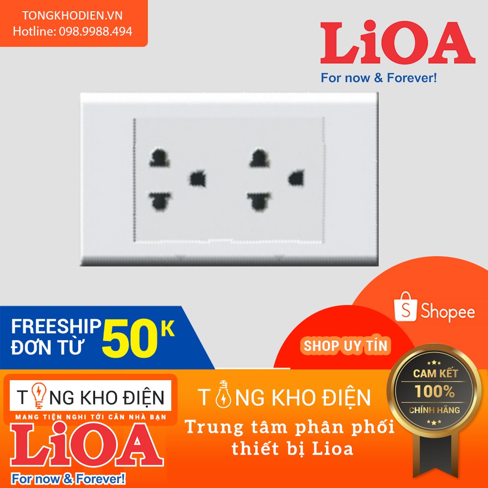 Thiết Bị Điện Gia Dụng > Mạch điện & Phụ tùng > Ổ cắm điện & Dây nối || Mặt 2 ổ cắm 3 chấu LiOA [CHÍNH HÃNG], Nhựa TRẮNG - Tiếp điểm ĐỒNGCòn hàng