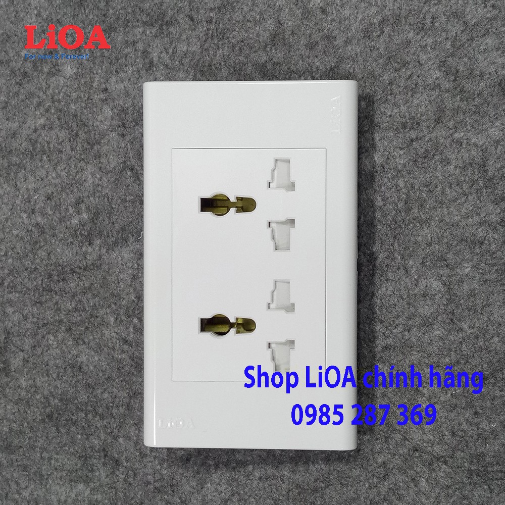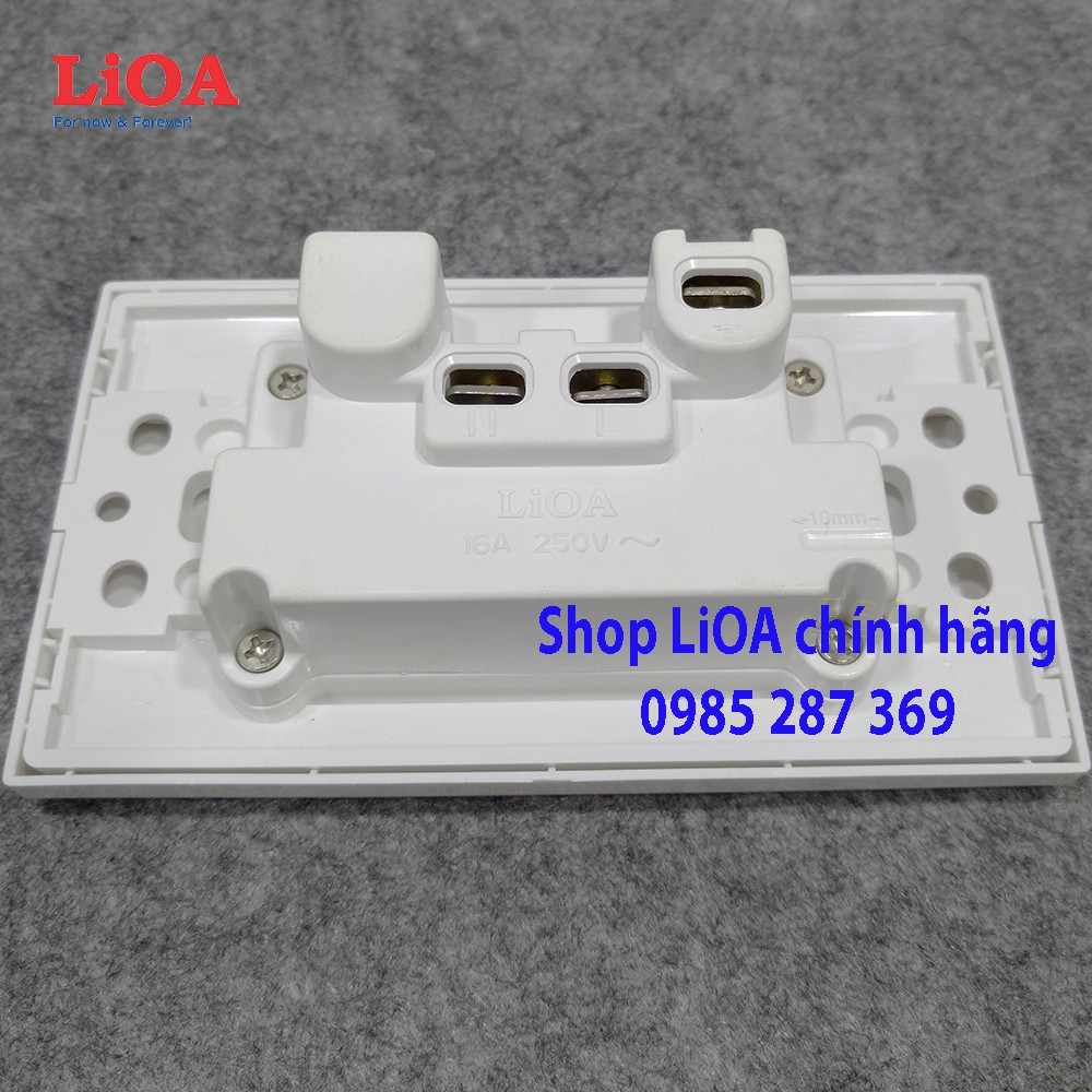 Mặt 2 ổ cắm đa năng 3 chấu LiOA chính hãng, Nhựa TRẮNG, tiếp điểm ĐỒNG