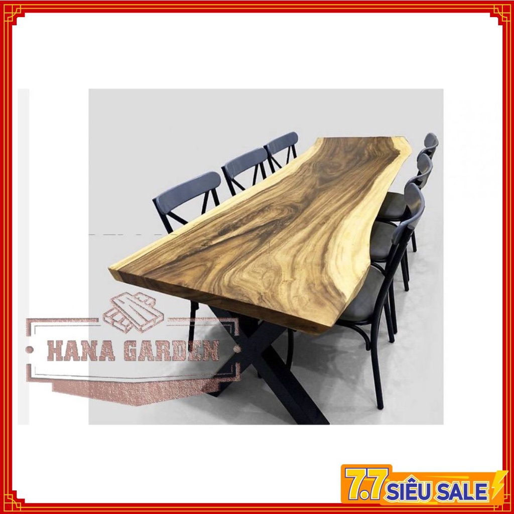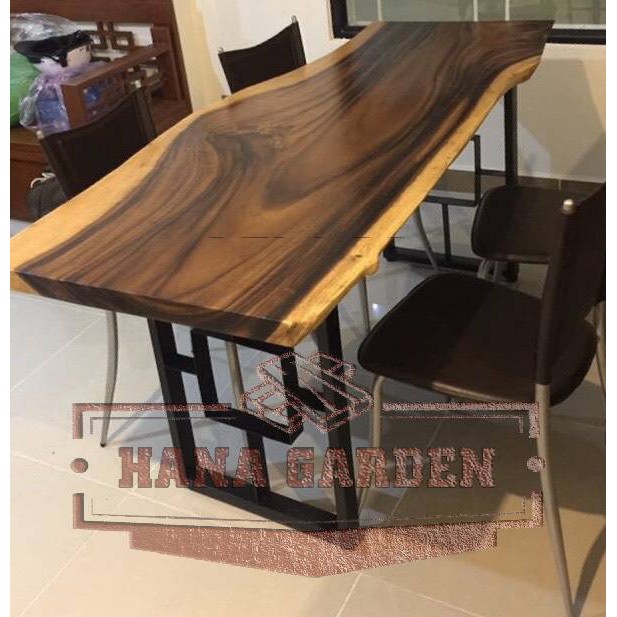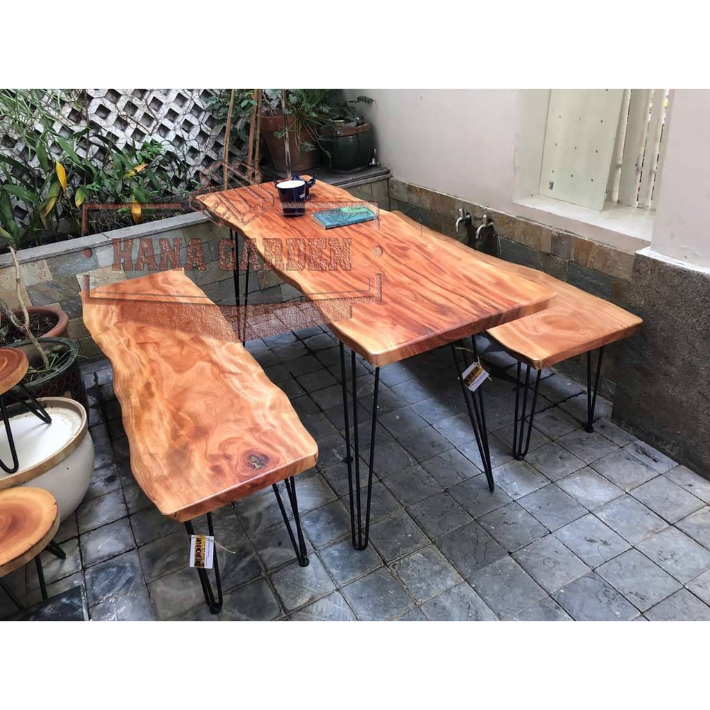 - Chất liệu: Gỗ Me Tây Tự Nhiên và chân thép đã sơn tĩnh điện có khả năng chống rỉ sét và xước.