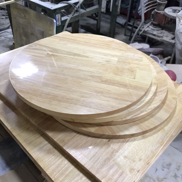 Kích Thước sản phẩm: Mặt bàn đường kính 49cm , Dày 18mm.Chất liệu:sản phẩm làm từ gỗ tự nhiên, Ghép thanh Cao su, Đã xử lý công nghiệp chống mối mọt, Có đặc tính Chống nước.