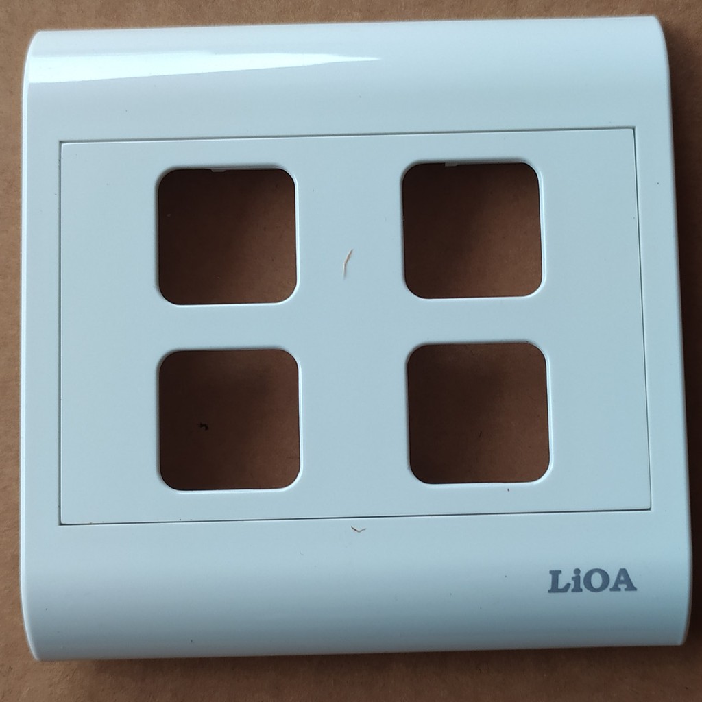 - Mặt lỗ Công tắc : được hình thành bởi 2 phần ( viền, và mặt ). được gắn bởi các chốt, khớp nhựa rất chắc chán và an toàn.Viền màu trắng có đập chữ nổi ( LiOA) , bên trong ghi mã sản phẩm. Mặt ngoài đạp chữ nổi và ghi thương hiệu trên sản phẩm , nó còn có thêm 2 vít cài sẵn trong đó..